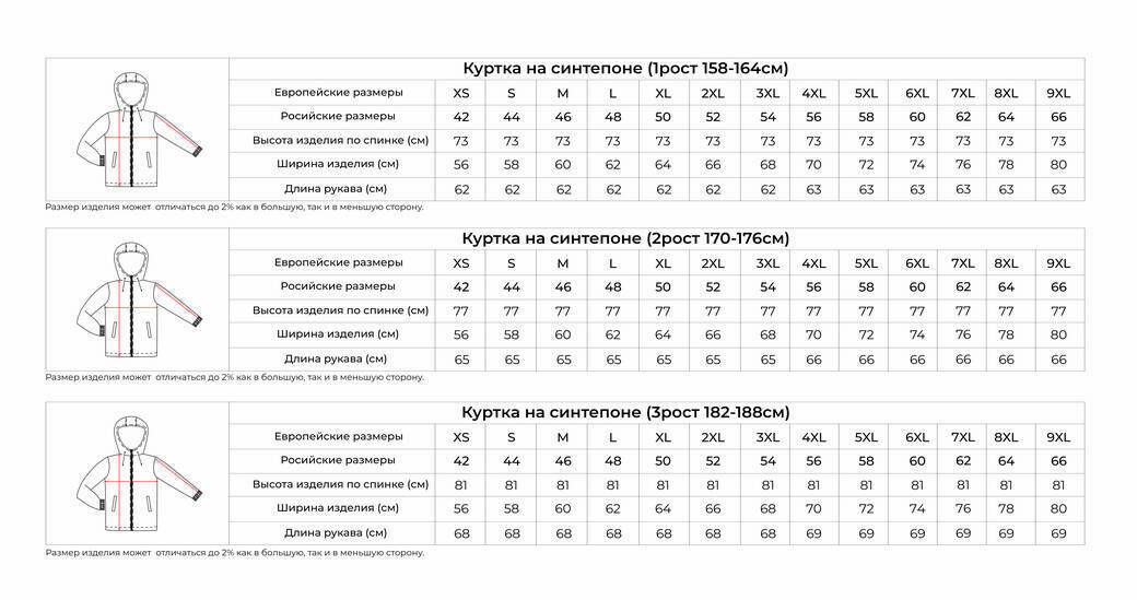 Материал: Оксфорд / мембрана Капюшон: с капюшоном Рукава: на липучке / без резинки / с резинкой Карман: карман на молнии / открытый Застежка: молния с планкой на кнопках Подклад: шелк Наполнение: синтепон 150 гр. Печать: полная запечатка